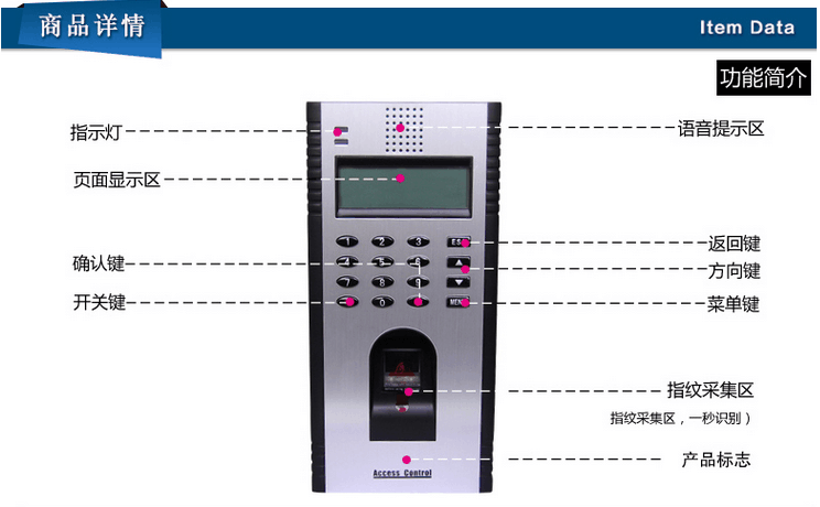 廣州門禁安裝_中控F708指紋門禁機